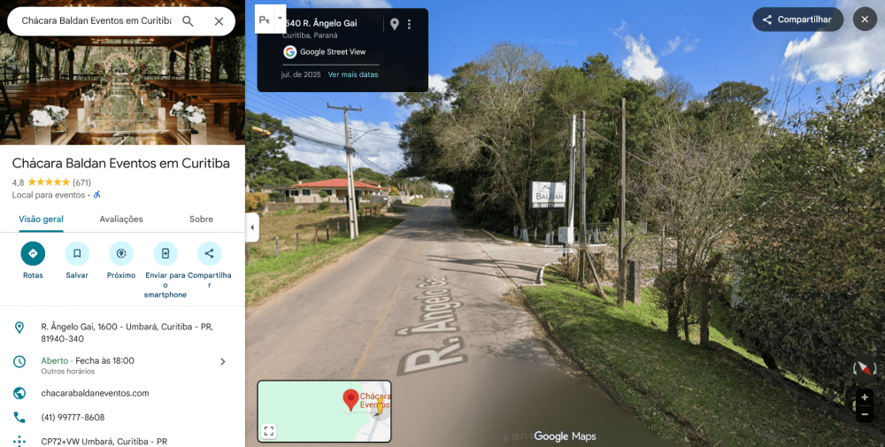 Os noivos convidam para recepção no dia 09 de maio de 2026 a partir das 18h, na Chácara Baldan, R. Ângelo Gai, 1600 - Umbará, Curitiba - PR, 81940-340. Não vai perder, né?